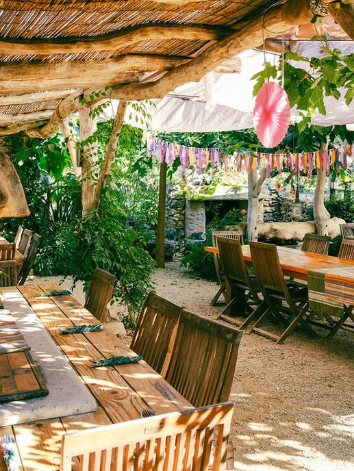 Comfortable, air-conditioned accommodation with a forest view, entirely built by us using local and second-hand materials.